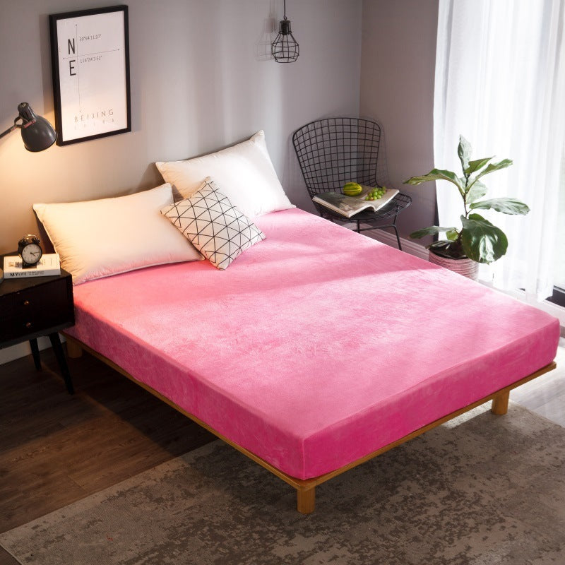 Product information: Product Category: Bed Sheet Bedding fabric: Flannel The main component of the fabric: polyester fiber (polyester) Main ingredient content of fabric: 100 Fabric sub-component: polyester fiber (polyester) pattern: plain Bed size: 180X (range 200 -220cm) cm color classification: Pink Flower type: zebra pattern, scarlet, bean paste, goose yellow, pink, wine red, Size specifications: 120*200+25cm, 150*200+25cm, 180*200+25cm Style: simple